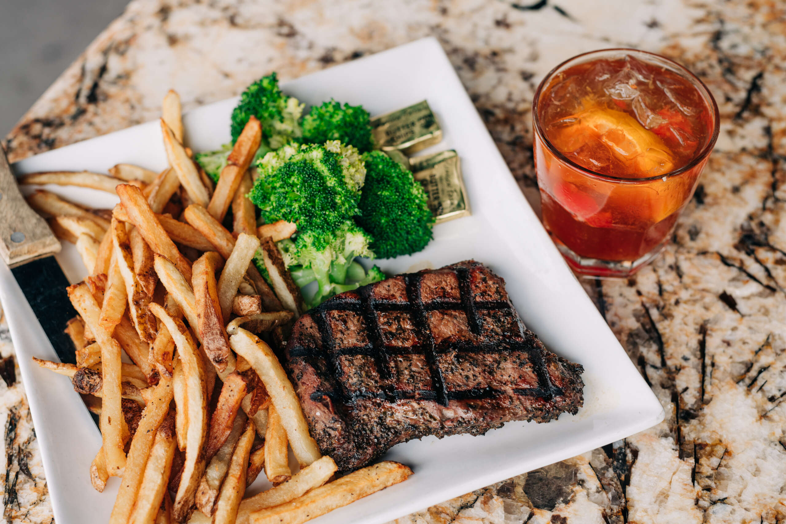 Our delicious 10 ounce Angus filet cooked to your liking with Mashed Potatoes, Baked Potato or Fries and fresh vegetables | Load your potato with sour cream, cheese and bacon for $2.49